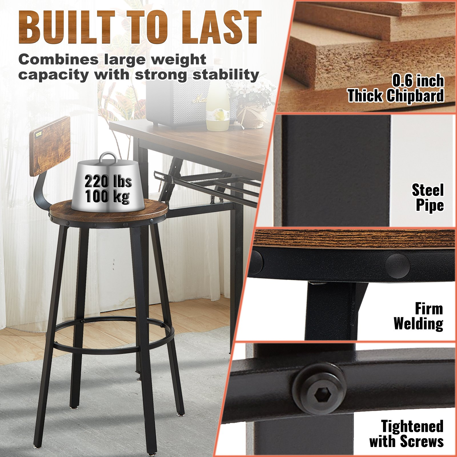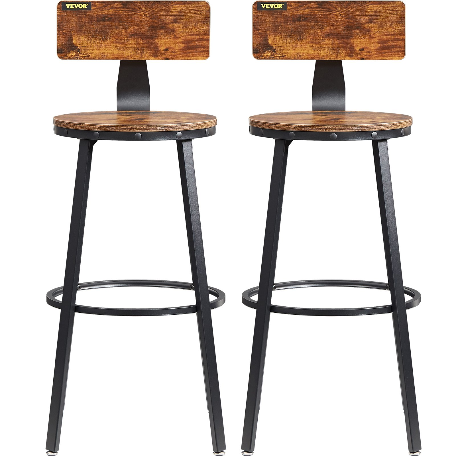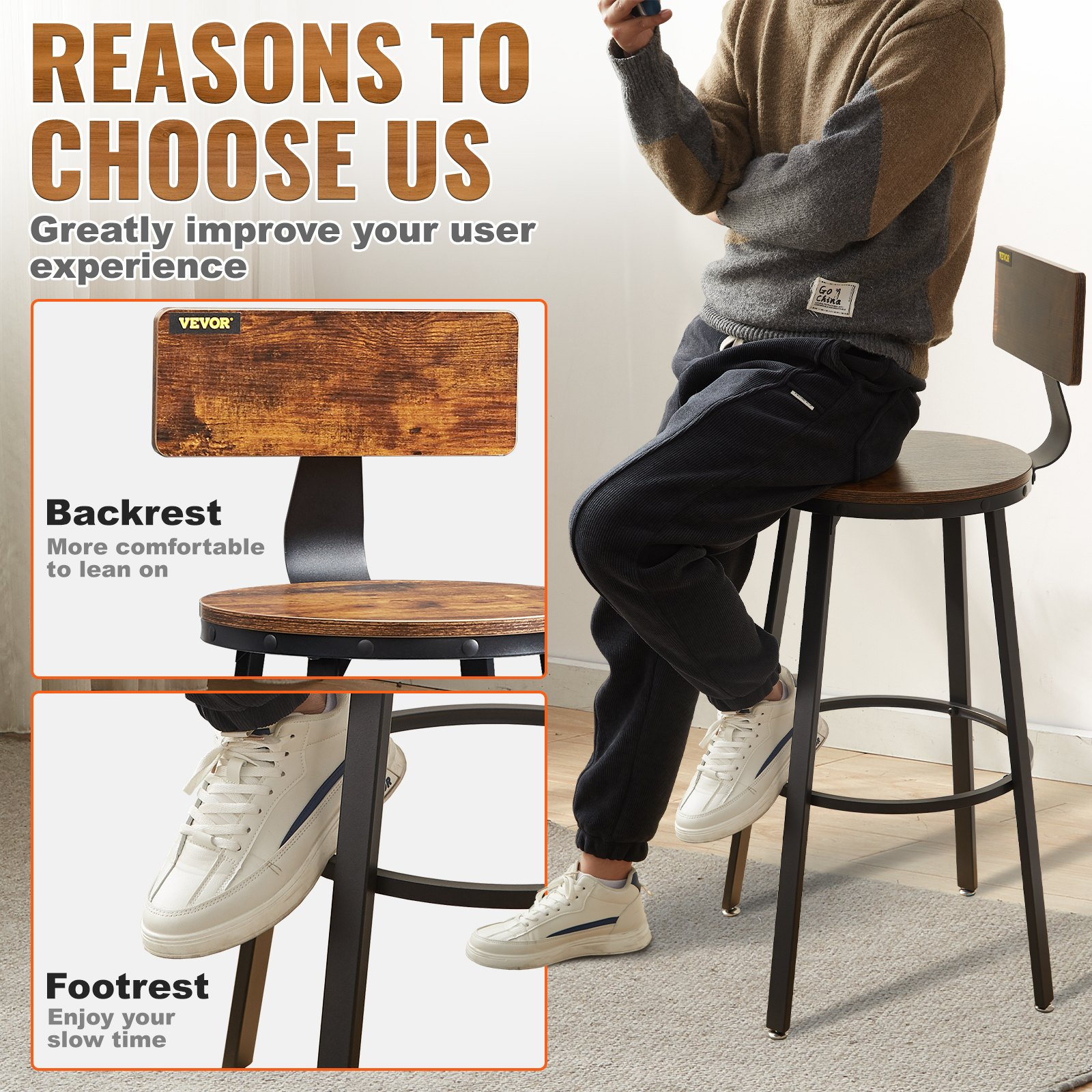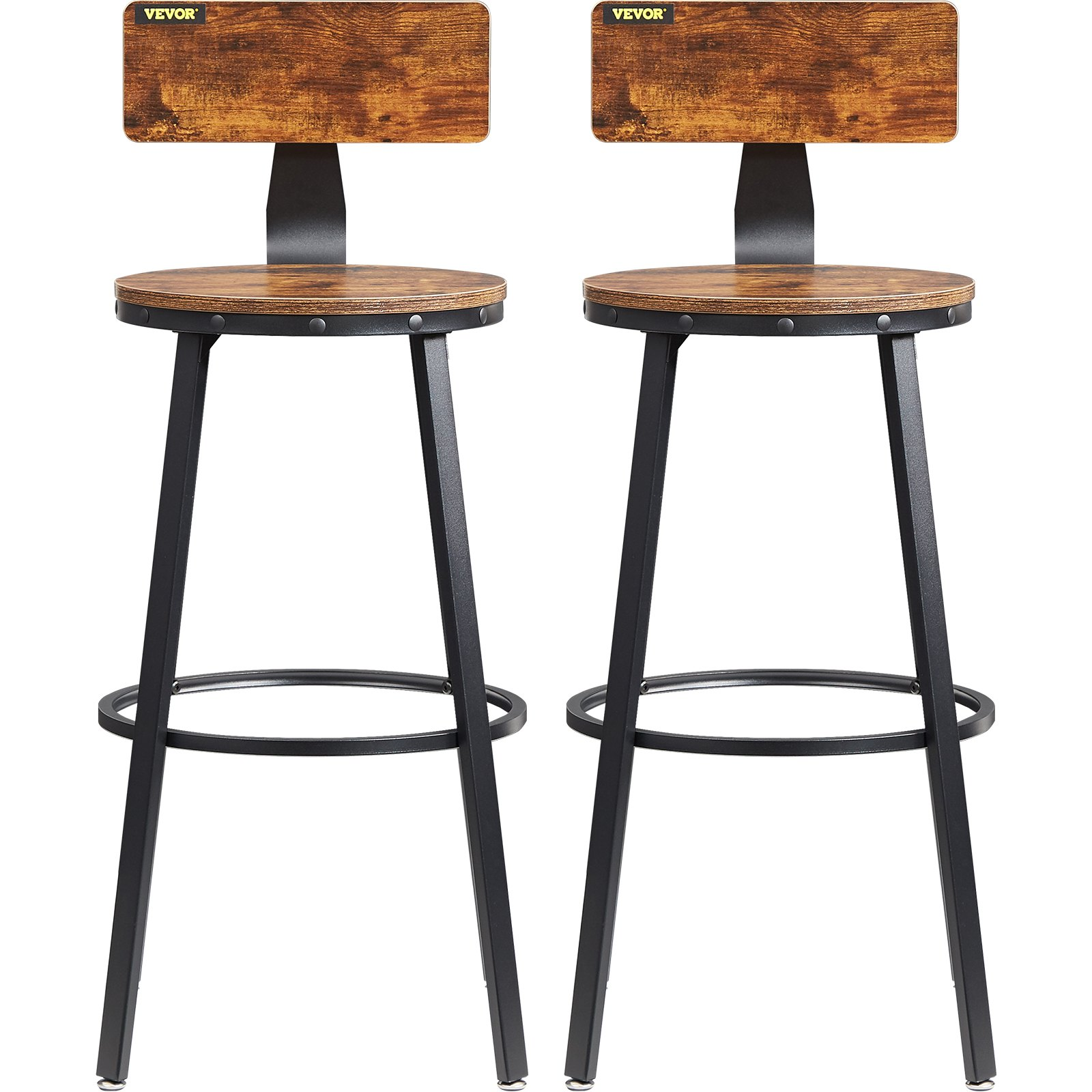 VEVOR Rustic Bar Stools Counter Height Round Bar Chairs with Backrest 29" 2 Set