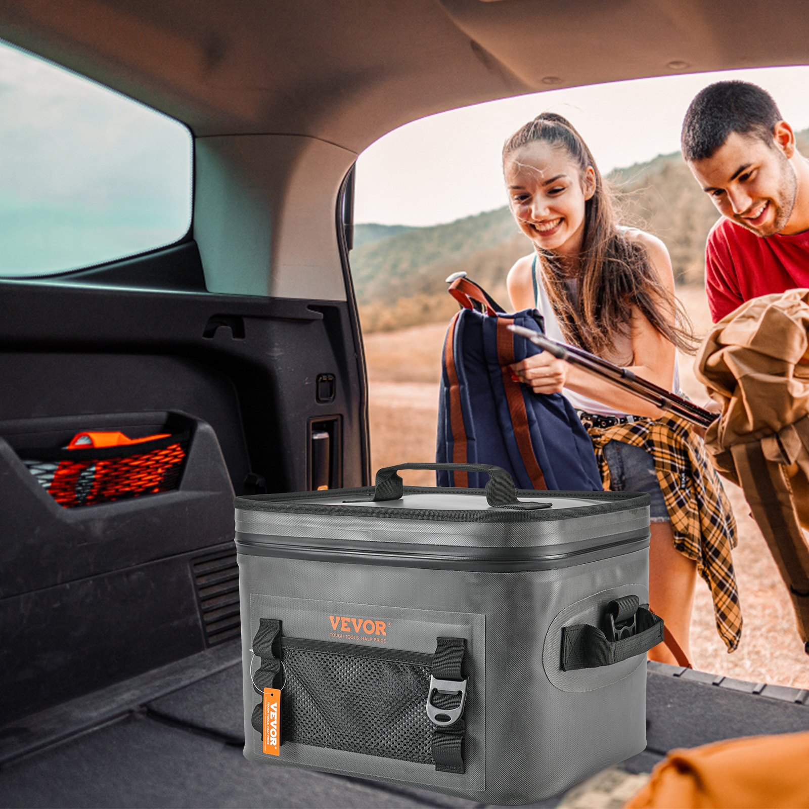 VEVOR Soft Cooler Bag, 16 Cans Soft Sided Cooler Bag Leakproof with Zipper, Waterproof Soft Cooler Insulated Bag, Lightweight & Portable Collapsible Cooler for Beach, Hiking, Picnic, Camping, Travel