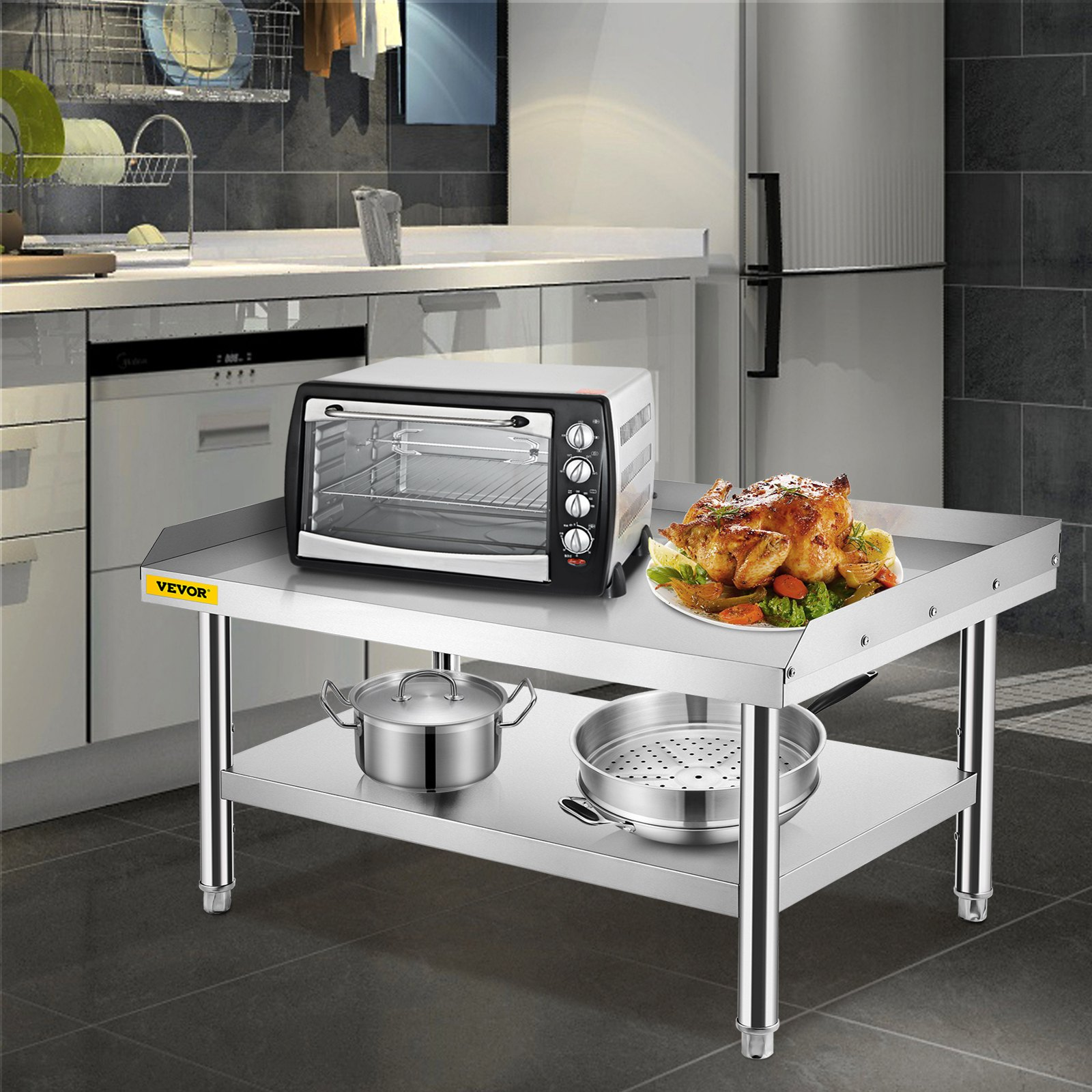 VEVOR Stainless Steel Equipment Grill Stand, 60 x 30 x 24 Inches Stainless Table, Grill Stand Table with Adjustable Storage Undershelf, Equipment Stand Grill Table for Hotel, Home, Restaurant Kitchen