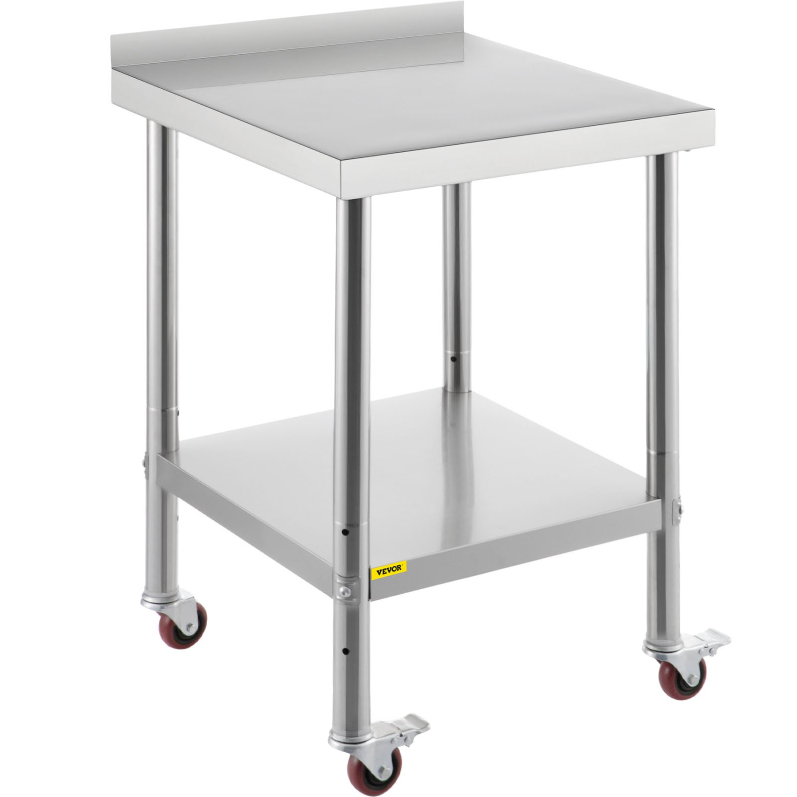 VEVOR Stainless Steel Prep Table, 24 x 24 x 35 Inch, 440lbs Load Capacity Heavy Duty Metal Worktable with Backsplash Adjustable Undershelf & 4 Casters, Commercial Workstation for Kitchen Restaurant