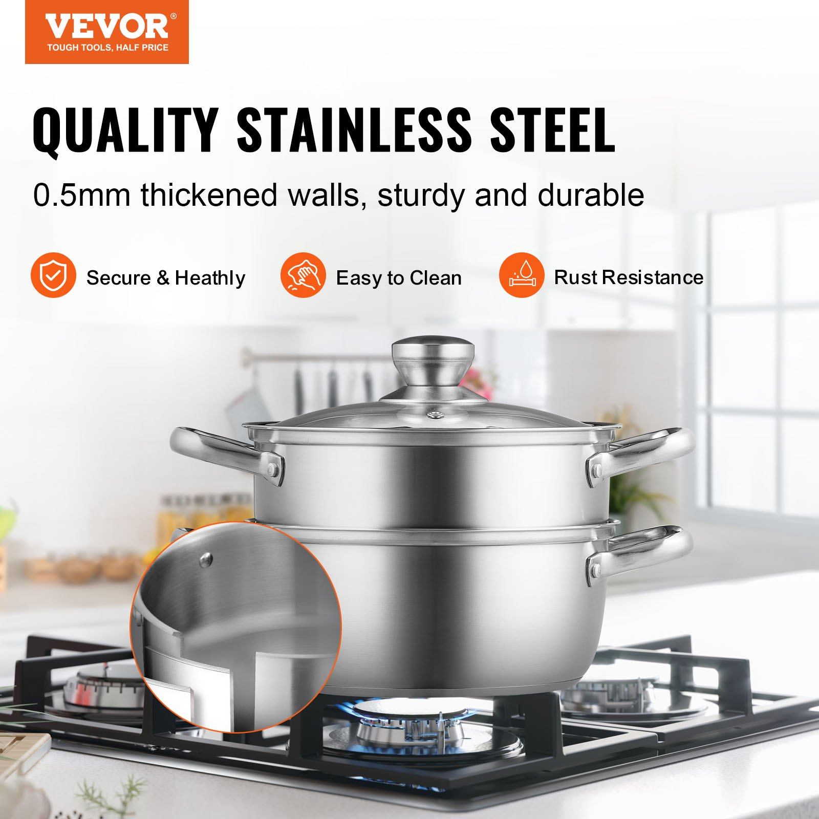 VEVOR Steamer Pot, 8.66in/22cm Steamer Pot for Cooking with 3QT Stock Pot and Vegetable Steamer, Large Capacity Stainless Steel Food Steamer Cookware with Lid for Gas Electric Induction Grill Stove