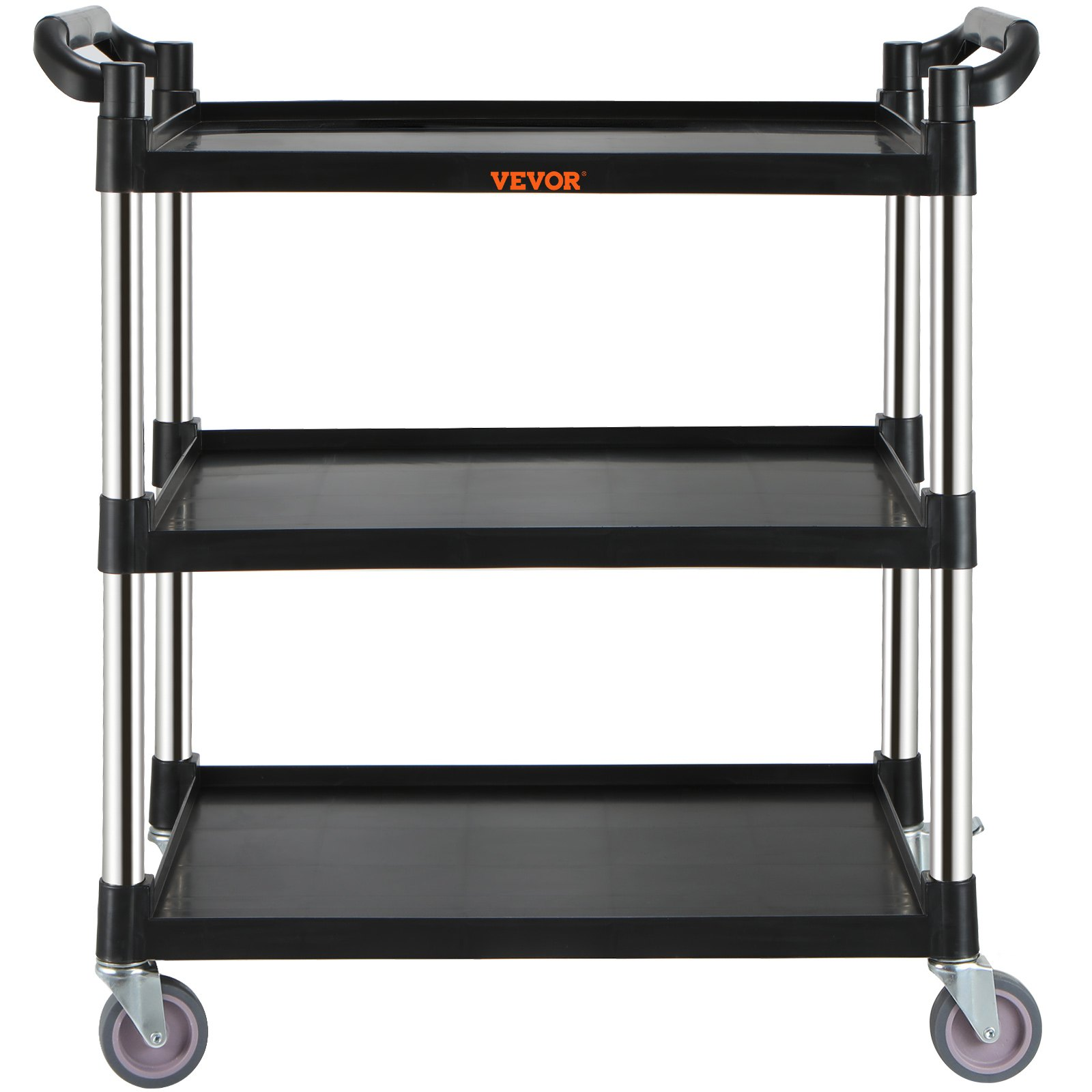 VEVOR Utility Service Cart, 3 Shelf Heavy Duty 154LBS Food Service Cart, Rolling Utility Cart with Lockable Wheels, 32.7" x 15.7" x 37.4" Plastic Utility Cart for Kitchen Office Restaurant Home, Black