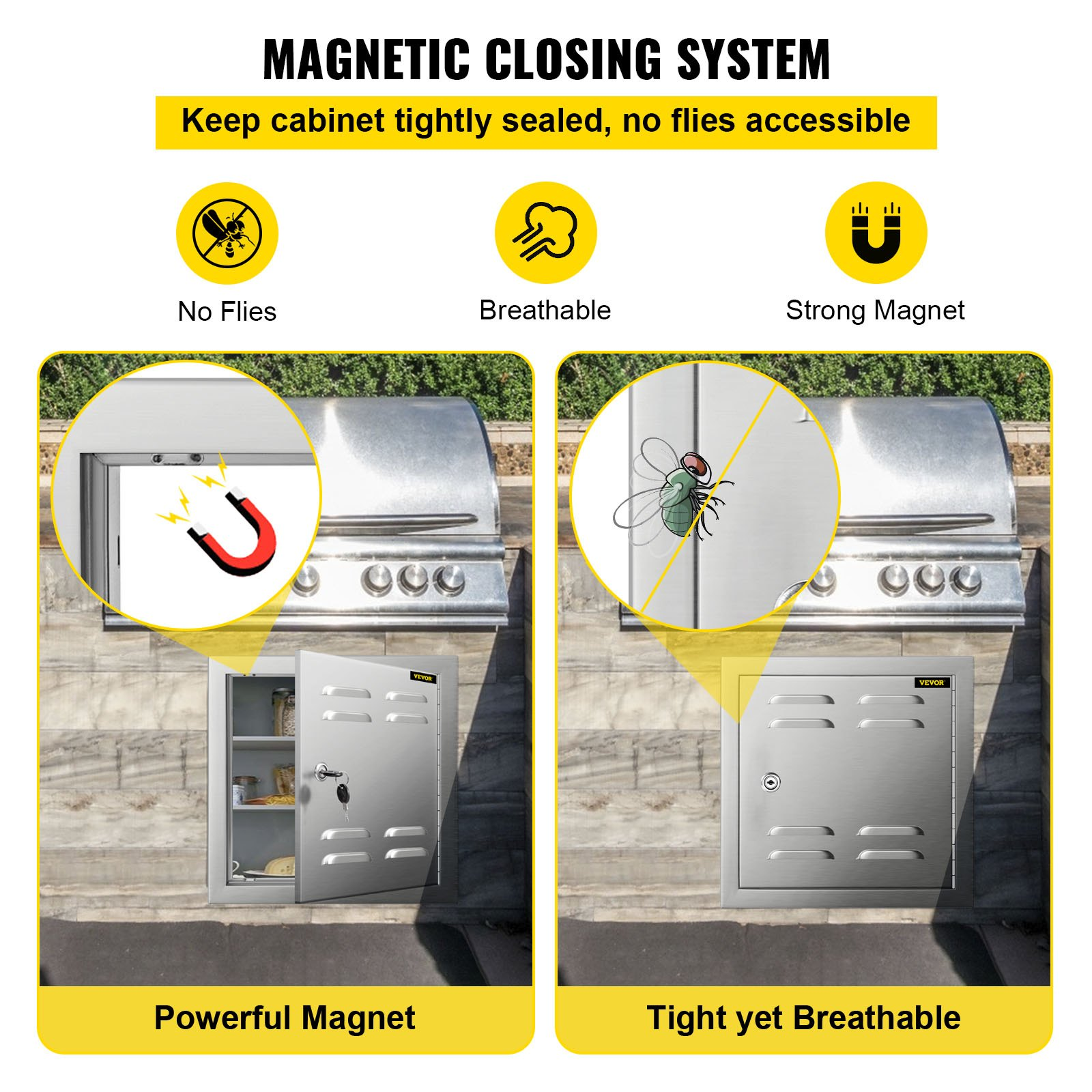VEVOR Vented Access Door 12x12in Single Access Door with Vents, 304 Stainless Steel Outdoor Cooking Doors, Flush Mount Vented Utility Door with Lock, Beveled Frame Access for BBQ Island Grill Kitchen