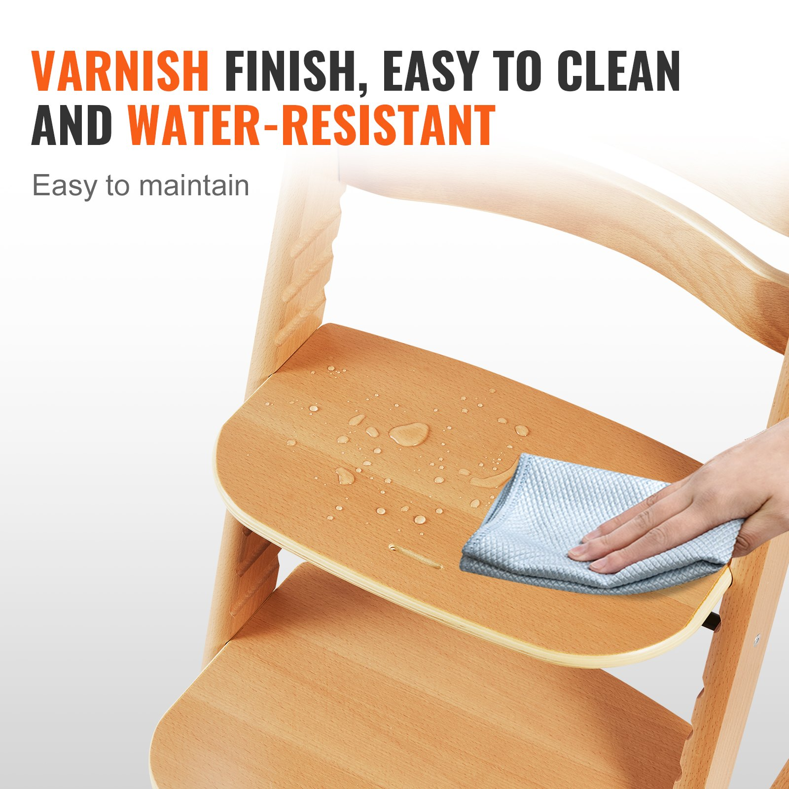 VEVOR Wooden High Chair for Babies & Toddlers, Convertible Adjustable Feeding Chair, Eat & Grow High Chair with Tray, Grow with Kid Portable Baby Dining Booster Seat, Beech Wood Toddler Chair, Natural