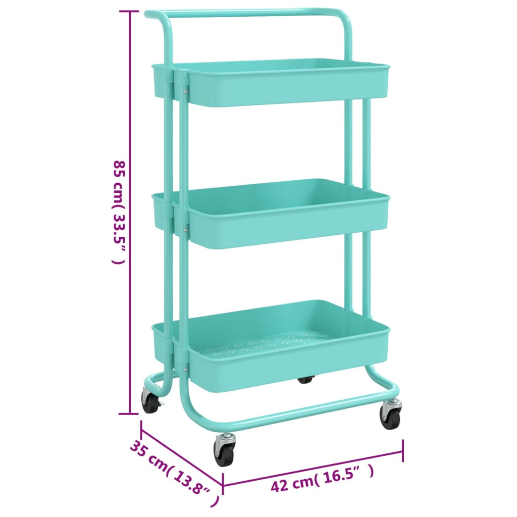 vidaXL 3-Tier Kitchen Trolley Turquoise 16.5"x13.8"x33.5" Iron and ABS
