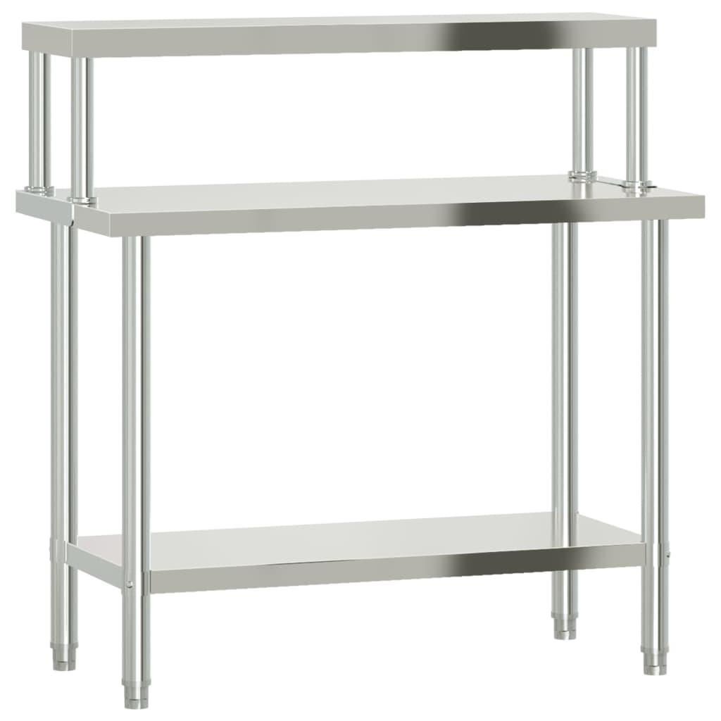 vidaXL Kitchen Work Table with Overshelf 43.3"x21.7"x47.2" Stainless Steel