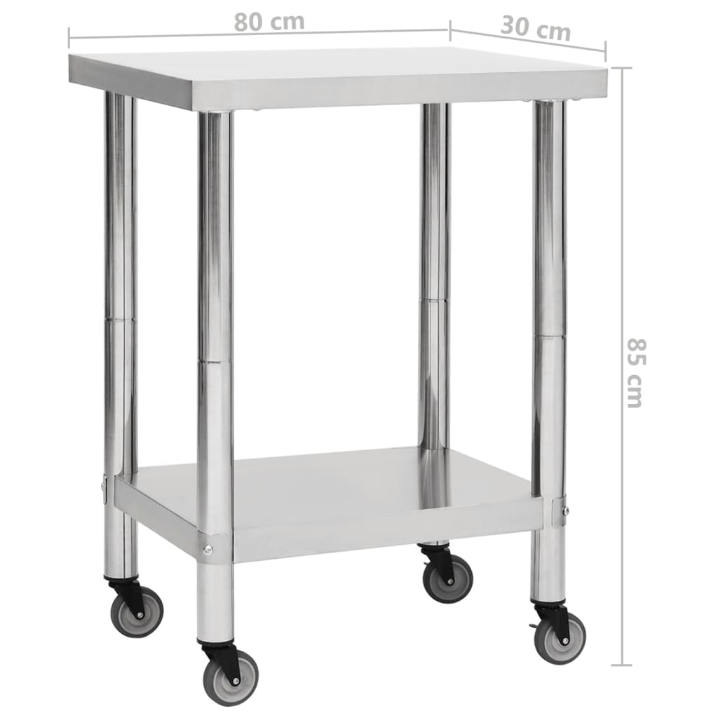 vidaXL Kitchen Work Table with Wheels 31.5"x11.8"x33.5" Stainless Steel