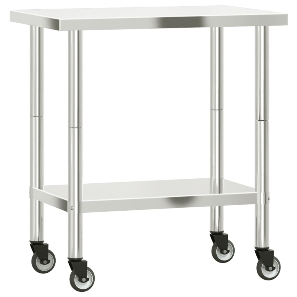 vidaXL Kitchen Work Table with Wheels 32.5"x21.7"x33.5" Stainless Steel