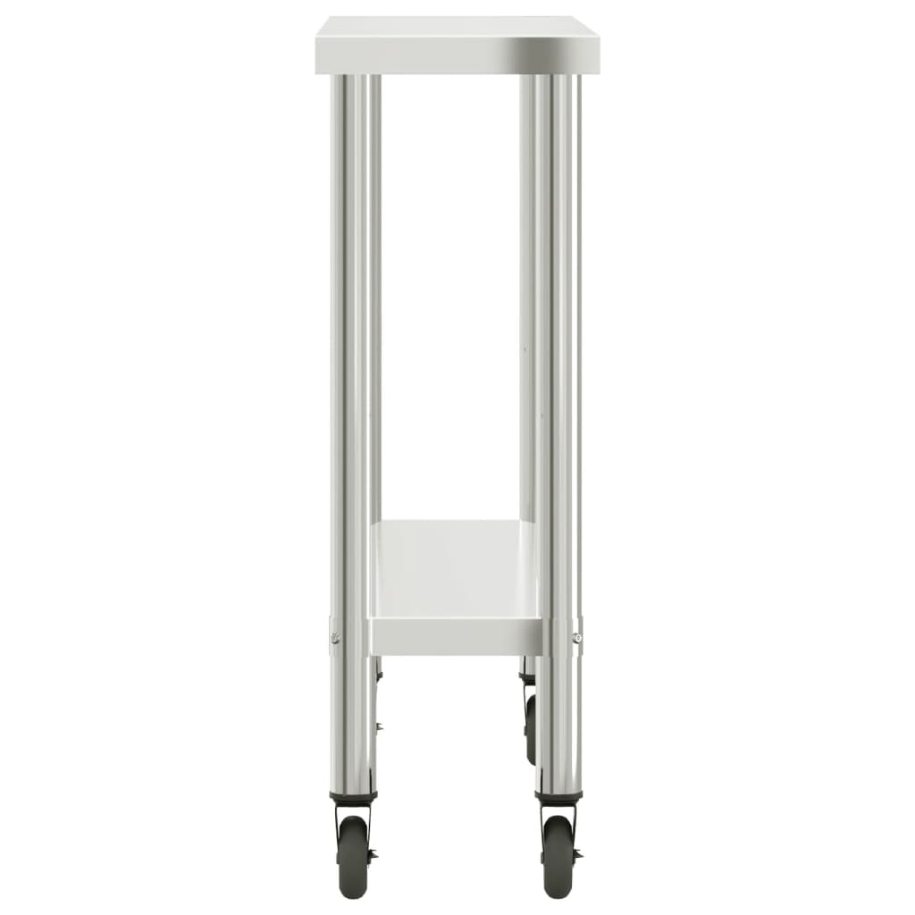 vidaXL Kitchen Work Table with Wheels 43.3"x11.8"x33.5" Stainless Steel